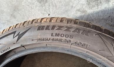 Marca e disegno pneumatici BRIDGESTONE BLIZZAK LM005. Misura, indice di carico, codice di velocità e marcature: 255/45 R 20 105 V MS. Anno Produzione 2022 (3422). 5.5 millimetri residui di battistrada.