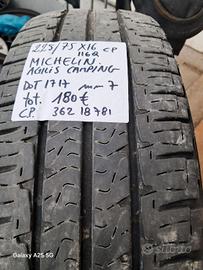 Marca e disegno pneumatici MICHELIN AGILIS CAMPING. Misura, indice di carico, codice di velocità e marcature: 225/75 R 16 116 Q MS. Anno Produzione 2017 (1717). 7 millimetri residui di battistrada.