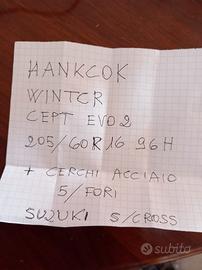 4 pneumatici invernali hankook con cerchi in ferro usati solo 4mila km l'inverno scorso