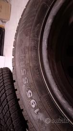 4 pneumatici 195/55 R15 invernali usati marca Dunlop + 4 cerchi metallo compatibili con Ford Fiesta ( 4 bulloni, attacco PDC 4x108, foro centrale 63,4 mm)