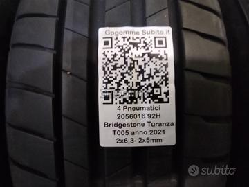 4 Pneumatici 2056016 92 H Bridgestone Turanza T005 anno 2021 2×6,3-2×5mm spedizioni in tutta italia incluse montaggio €60 presso la nostra officina
