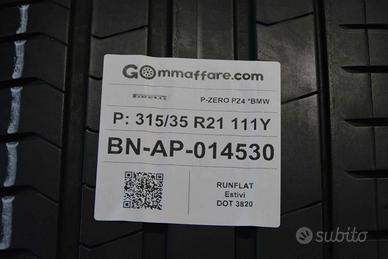 Codice ricambio: BN-AP-014530 Ogni pneumatico è selezionato e testato da tecnici specializzati con macchinari professionali per garantirne l'integrità e la massima sicurezza stradale. Trattandosi di prodotti usati, possono presentare segni di usura o riparazioni che non ne compromettono in alcun modo l'affidabilità. Acquistando da noi, scegli un prodotto sicuro e pronto al montaggio. Battistrada e DOT Le misurazioni del battistrada sono indicative e possono variare leggermente. Il DOT è specificato in annuncio; variazioni di produzione inferiori ai 12 mesi tra pneumatici dello stesso lotto sono da considerarsi standard. Stato Pneumatici Eventuali lievi segni d'usura (graffi, riparazioni professionali o scolorimenti) sono tipici del prodotto usato e non ne compromettono la sicurezza. Per un'estetica impeccabile, consigliamo l'acquisto di pneumatici Nuovi o Demo. Resi e Reclami L'acquisto implica l'accettazione delle caratteristiche sopra descritte, che non costituiranno motivo di contestazione. È garantito il recesso entro 14 giorni esclusivamente per prodotti non montati né usati, con spese di spedizione (A/R) a totale carico dell'acquirente. Pirelli P-ZERO PZ4 *BMW, misura Ant 275/40 R21, misura Post 315/35 R21, indice di carico e velocità 107Y, condizione Usato buone condizioni, uso Estivo. Set bimisura: misure e parametri distinti per Ant e Post. Dimensione (Ant) — 275/40 R21 Dimensione (Post) — 315/35 R21 C/V (Ant) — 107Y C/V (Post) — 111Y Marca — Pirelli Modello — P-ZERO PZ4 *BMW Bimisura — Sì Condizione — Usato buone condizioni Categoria — treno Batt. (Ant) (mm) — 6,4 Batt. (Post) (mm) — 5,9 Stagione — Estivo DOT (Ant) — 40/20 DOT (Post) — 38/20 Runflat (Ant) — Sì