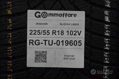 > Marca: bridgestone > Misura: 225/55 r18 225/55/18 2255518 > Modello: blizzak lm005 > Condizioni: usati >Tipologia: invernali > Carico e velocità: 102v > Battistrada residuo: 56% > Dot: 2122 > Sede: Via del lavoro n°13, Argelato(Provincia di Bologna) > Fisso: 0823-15 00 000 > Cellulare - whatsapp: 349-4496496