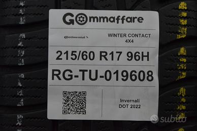 > Marca: continental > Misura: 215/60 r17 215/60/17 2156017 > Modello: winter contact 4x4 > Condizioni: usati >Tipologia: invernali > Carico e velocità: 96h > Battistrada residuo: 80% > Dot: 2022 > Sede: Via del lavoro n°13, Argelato(Provincia di Bologna) > Fisso: 0823-15 00 000 > Cellulare - whatsapp: 349-4496496