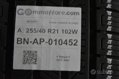 Auto compatibili: maserati grecale Marca: continental Misura A: 255/40 r21 255/40/21 2554021 Misura P: 295/35 r21 295/35/21 2953521 Modello: cross contact rx (mgt) Condizioni: demontati Tipologia: 4 stagioni Carico e velocità: 102w 107w Battistrada residuo: 100% Dot: 2421 0521 Sede: Strada Statale Appia n°16 , Bonea (Provincia di Benevento) Fisso: 0823-1500000 Cell,whatsapp: 327-4215765 - 379-1416142