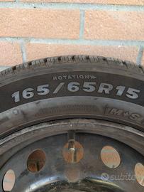 vendo 4 gomme invernali su cerchi, 165/65R15 DOT 32/2021, perfette, usate solo per 2.600 km, battistrada come nuovo al 90%, cerchioni 4 fori, adatti per Renault, Dacia, Nissan, Smart, In più regalo altre 4 gomme estive stessa misura al 40% circa. vendo per cambio auto, cell. 3337130106