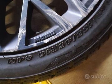 Vendo 4 pneumatici invernali montati su cerchi in lega MOMO 195/45 R16. N°2 NEXEN DOT 30/23 e N°2 KLEBER DOT 33/18. N°2 cerchi sono da ripristinare esteticamente