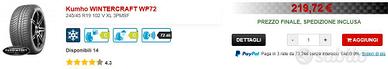 N° pneumatici invernali KUMHO - WINTERCRAFT WP72 245/45 R19 102V DOT (data di produzione): 2524 = 25ma settimana del 2024 (giugno 24) Usati una sola stagione per circa 4000 km Prezzo nuovo (vedi foto) 219 cad x 4 = 876 €