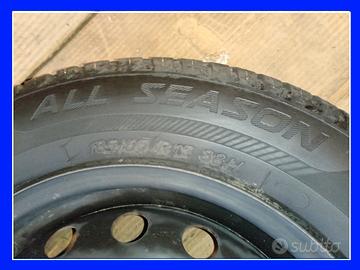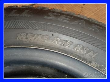 VENDO 4 ruote complete composte da cerchio in ferro Originale misura 6 x 15 pollici , ET 43 , attacco a 4 FORI , PCD 4 x 100 + pneumatici 4 STAGIONI marca RIKEN modello All Season , misura 185/65 R15 88H , DOT 0723 con 6,85 mm di battistrada residuo ( tutti i dati sono visibili in foto ) adatte a FIAT Grande Punto e Punto EVO dal 2005 in poi .