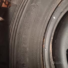4 RUOTE COMPLETE KIT DA FANGO COMPOSTO DA 4 CERCHI IN FERRO USATI E 4 GOMME NUOVE (0 KM ) MISURA 205 75 15 S.