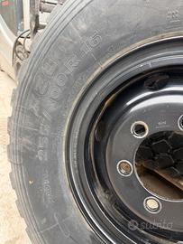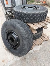 Vendo 4 ruote complete con pneumatici Michelin misura 255/100 R16 (9.00 R16) montati su cerchi in acciaio da 16” a 6 fori.