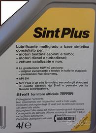 -2 taniche da 4 litri di olio motore lubrificante multigrado a base SINTETICA Shell Sint Plus 10W-40, per motori a BENZINA aspirati e turbo, motori DIESEL e turbodiesel, vetture catalizzate e non.