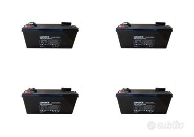 Lotto 4x Batterie AGM Luminor LDC12-200 | 12V 200Ah ciascuna | Deep Cycle VRLA – Ideali per Nautica, Camper, Solare, Backup Off-grid, come nuove, perfettamente funzionanti e pronte all’uso.