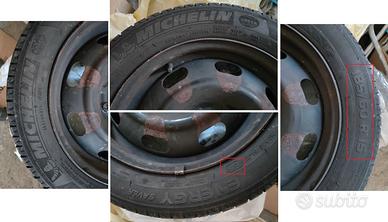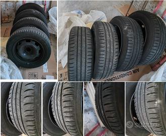Cerchioni da 15" con montate Gomme Michelin Energy saver 185/60 R15. Il battistrada è al 80/90% (hanno ancora i "peletti" come si vede dalle foto) e sono di metà 2016 (dot 2916 in foto). Erano montate sulla mia precedente auto, Citroen C3 prima serie, sostituite poco prima di cambiarla (vendo a parte anche i copricerchi in plastica). Tolte dal box sono ancora gonfie da allora, le valvole sono incluse. Primo contatto in chat subito o su WhatsApp. Posso inviare foto ad alta definizione. Disponibile solo ritiro, no spedizione.
