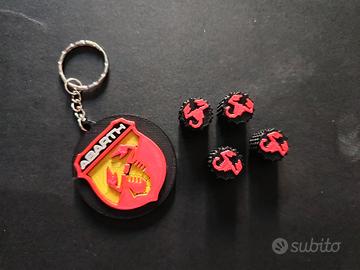 Set 4 tappi valvola pneumatico logo ABARTH più portachiavi per ritiro a mano zona pigneto
