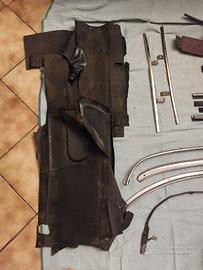 Profili in acciaio e rifiniture per Alfa Romeo Duetto anni 70 (coda tronca); impianto di riscaldamento e n. 2 coperture in plastica interne; tappetini in gomma non nuovi, come da foto. L'impianto di riscaldamento è stato smontato funzionante ma fermo da tanti anni; i tappetini mostrano segni di usura; i profili disponobili sono quelli della foto. Vendita in blocco. Ritiro merce nel comune di Cervia (RA) No spedizione