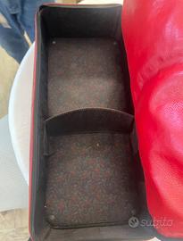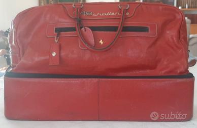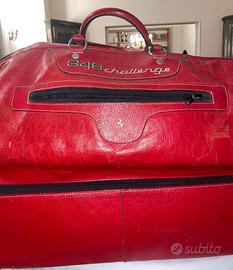 Borsone per attrezzatura da gara Ferrari 348 Challenge realizzata da Schedoni. Due manici in pelle, tracolla in pelle. Cerniera. Due scomparti, il primo è rigido e il secondo è flessibile. Interni in tessuto. Buone condizioni. Dimensioni: 38x60x26 cm.