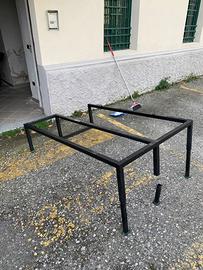 struttura letto leggera per fiat dobló e simili, si smonta in 5 minuti, letto matrimoniale o singolo, struttura in scatolato lunga 154, larga 100, alta 44, si può allargare a ribalta a letto matrimoniale lungo 185, largo 115, oppure letto singolo con spazio laterale, è molto pratico avendo diversi ribaltamenti, i piedini sono regolabili in altezza per renderlo adattabile ai modelli auto non piani