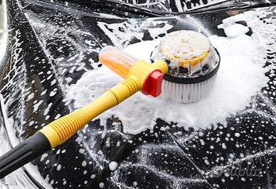 si collega ad una pompa d'acqua,la stessa fa ruotare la spazzola con la pressione, ruotando lava la carrozzeria facendo uscire lo shampoo per auto dell'apposito vano.