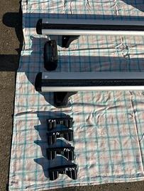 Vendo barre Thule a 4 punti fissi per Bmw (o simili). In buono stato, complete di agganci e coperchi con chiavi. Prezzo 180€.