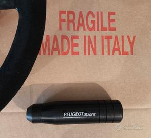 Materiale nuovo prodotto e personalizzato in Italia da ditta specializzata nel settore 1. Volante OMP da 350x90mm in pelle scamosciata con logo Peugeot Rallye ricamato - Prezzo 130,00euro 2. Leva alta cambio tipo rally in alluminio da 140mm con logo Peugeot Sport inciso al laser completa di kit montaggio - Prezzo 35,00euro 3. Pomello del cambio mod. tondo in alluminio da 70mm con logo Peugeot o Peugeot Sport inciso al laser completo di kit montaggio - Prezzo 30,00euro 4. Cuffia del cambio universale in vera pelle con logo Peugeot Sport ricamato - Prezzo 35,00euro Consegna diretta su Roma o spedizioni in tutta Italia con corriere tracciabile ( prezzo variabile da 8,00 a 10,00euro in base al materiale acquistato )