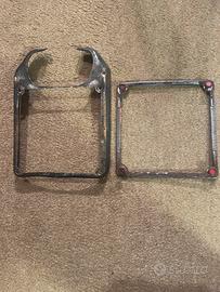 N 2 accessori porta targhe per vespa primi Anni 50 primo con bordo faro telaio in ottome,secondo bordo in accio con buloni con testata rossa in ottone particolari nel suo genere prezzo da concordare vendita solo in blocco il tutto come da foto Acquistabile con formula visto e piaciuto spese di spedizione a parte