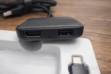 Adattatore HDMI / USB per auto – TV Car Mate Adapter modello CA361. Permette di collegare tramite cavo HDMI diverse sorgenti al sistema dell’auto compatibile con CarPlay / Android Auto. Dispone anche di una porta USB per collegare una chiavetta USB e riprodurre video o contenuti multimediali. Usato solo per qualche settimana con Fire TV Amazon hdmi , funziona perfettamente. Condizioni ottime, completo di scatola e accessori come da foto. Per ulteriori info su come funziona guardare su youtube : OTTOCAST TV CAR MATE Spedizione oppure consegna a mano zona legnano rho vanzago pregnana pogliano canegrate pogliano