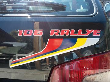 Prima vera e unica replica fedele degli adesivi originali della Peugeot 106 Rallye 1.3 realizzata a partire da una coppia di originali nuovi ancora imballati.