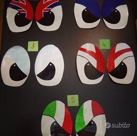 Vendo per tutti i modelli di mini Dalla R50 alla R53 Mini One, Mini Cooper, S, JCW Occhi adesivi da posizionare sotto il cofano anteriore Per info 344 257 7632 (anche whatsapp) contattatemi per ogni richiesta Danno un tocco di originalità e personalizzazione alla mini Disponibili di qualsiasi colore Si possono fare a sfondo unico con il colore della vostra auto 10 euro Oppure con grafiche particolari, ad es. bandiera a scacchi, bandiera italiana, bandiera inglese 15 euro Effettuo Spedizioni in tutta Italia con poste italiane Posta2 euro 3 Raccomandata euro 6 Offro e pretendo serietà Per info 344 257 7632 (anche whatsapp) contattatemi per ogni richiesta