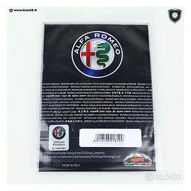 Set di 4 adesivi per la coppetta del mozzo ruota con ultimo logo Alfa Romeo su base cromata.