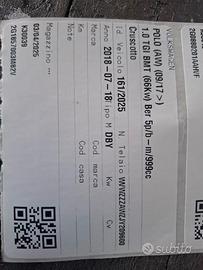AIR BAG VW POLO 2018 CODICE MOTORE DBY