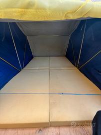 Vendo air camping datato taglia S ( io sono altro 1:85 e ci entro benissimo) ha due macchie sopra la tela , vendo compreso di barre da gronda raptor, prolunga scala , impianto elettrico interno e inferiore con carica batteria e interruttori , e spogliatoio come in foto. NO CURIOSI NE PERDITEMPO NON SPEDISCO