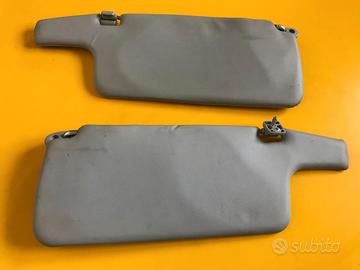 Sono di colore grigio e in vinile con parte interna in tessuto. Specchietto solo su quello lato passeggero. Adattabili sulle eg che escono con l'aletta parasole centrale.
