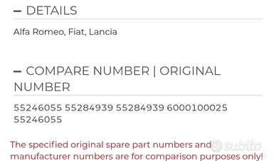 CODICE MOPAR 55284939, EQUIVALENTE 55246055, QTY 1 PEZZO, PREZZO 120,00 EURO