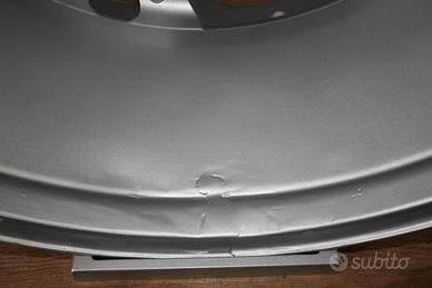 Prodotto usato, verificato centrato, riverniciato, con coppe centrali. Un cerchio presenta saldatura su bordo interno. Used wheels, verified no bumps, repainted, with center caps. One wheel show a welding in the inner edge