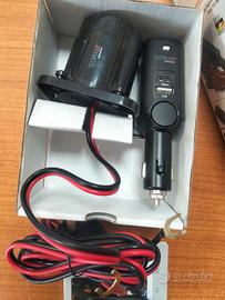 Allarme Auto Universale con Porta USB-C™ e USB-A per Presa Accendisigari Pro TX-168 Allarme auto con porte USB per presa accendisigari da 12V o 24V; 1x porta di ricarica USB-C™ con una potenza di uscita totale di 5V / 3A; 1x porta di ricarica USB A con una potenza di uscita totale di 5V / 2.4A Allarme sirena da installare nel vano motore per un maggiore rumore (12V o 24V) Pulsante di allarme (circa 105dB); Attivazione automatica dell'allarme al rilevamento del movimento interno grazie sensore PIR; Allarme Auto e sirena esterna: ciascuno di circa 105dB