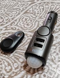 Technaxx Sensore di rilevamento del movimento PIR Sistema di allarme per auto Monitoraggio dell'interno del veicolo Funzione ricarica sirena 110 dB 2 porte USB Allarme portatile con telecomando TX-100