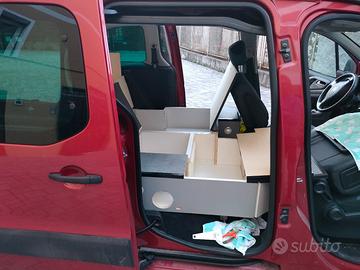 Allestimento camper per Berlingo. Completamente su misura, è stato realizzato per Berlingo serie 2, prodotta dal 2008 al 2018. È costruito con multistrato di qualità da 20mm, ricoperto in materiale anti usura. Sono stati fatti dei cuscini in schiuma di qualità da materasso di casa, rivestiti in Alcantara. Montabile e smontabile in un'ora, per poter attrezzare la macchina per un weekend all'aperto e poi usarla tutta la settimana con i sedili. È previsto lo spazio per le taniche dell'acqua e un lavandino, oltre ad un alloggiamento per una seconda batteria ed eventuale inverter.