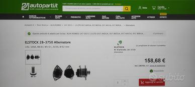 Buongiorno vendo alternatore elstock 28/3750 usato e perfettamente funzionante, ho acquistato a parte ruota libera originale INA mai usata che monto prima di vendere. Possibile spedizione al costo di 12 euro con doppio imballo. Per compatibilità potete controllare online