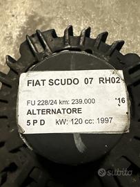 Alternatore FIAT SCUDO 1997cc diesel del 2016 versione07>20, 5 porte, furgone, tipo motoriz. RH02, 120.00kW codice ricambio VALEO 9678048880 CL15 12V S17/16 caratteristiche particolari 25/3/4 (rif. interno 22824-ALTE-850201 PPT , posizione M0700) . Usato e in stato molto buono. Spedizione in tutt'Italia e all'estero. Sono disponibili anche altri ricambi della stessa auto.
