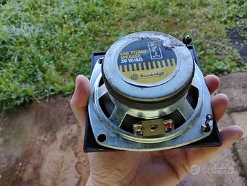 Vendo coppia di altoparlanti (diffusori) originali Bandridge con potenza di 30W. Componenti audio di qualità, ideali per progetti di autocostruzione, restauro di vecchi diffusori o impianti audio vintage. I coni sono integri e in buone condizioni estetiche, pronti per essere installati.