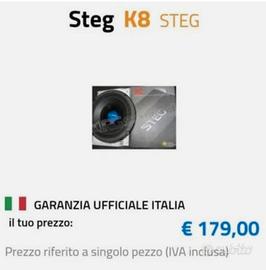 Vendo in blocco altoparlanti nuovi steg K8 competition 600w + 4 tweeeter steg tfx26 100mm nuovi mai montati pagati 1400 euro. Vendo in blocco a 550 euro.