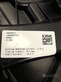 Alzacristalli Posteriore Sinistro Alfa Romeo Giulia Stelvio(949_) OEM 50552812, compatibile con modelli Giulia (6S) e Stelvio (6V) dal 2016 al 2023.
