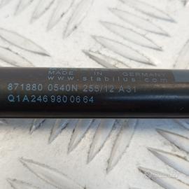 Ammortizzatore portellone posteriore originale Mercedes-Benz, smontato da Classe B W246 anno 2017. Ricambio prodotto da Stabilus (Made in Germany), modello LIFT-O-MAT, con forza 540 N e lunghezza totale di 520 mm. Progettato per il sollevamento assistito del portellone posteriore, questo pistone è installabile su entrambi i lati ed è compatibile con tutte le versioni di Classe B senza apertura elettrica automatica. Codice OEM Mercedes A2469800664, marcato anche Stabilus 871880 0540N 255/12 A31.Ricambio noto come ammortizzatore portellone posteriore Mercedes B, conosciuto anche come molla a gas cofano bagagliaio, pistoncino portellone posteriore Stabilus, supporto idraulico apertura portabagagli, pistone LIFT-O-MAT portellone Mercedes-Benz, ammortizzatore cofano posteriore originale OEM A2469800664.