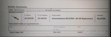 Vendo coppia di ammortizzatori Anteriori Bilstein B4 22-1837 per VW Golf VI, Beetle, Skoda Yeti.