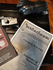 Vendo fantastico amplificatore ROCKFORD FOSGATE PUNCH P450.4 in condizioni pressoché perfette. Potenza “teorica” 60w x 4 canali (4 ohm) - 110 x 4 canali (2 ohm) – 225 x 2 canali (4 ohm) ma come tutti sanno le potenze “reali” di ROCKFORD sono decisamente superiori. Assolutamente non sfruttato perché era sull’auto che poi è passata a mia figlia. Completo di scatola, manuale e certificato di prova; in omaggio comando a distanza per il subwoofer, sempre marca ROCKFORD, mai montato. Viste le condizioni dell’oggetto (ottime) ed il prezzo già contenuto, questo non è trattabile. Preferibile ritiro a mano ma è possibile anche la spedizione con corriere al costo aggiuntivo di euro 15; in tal caso non rispondo di danni dovuti al trasporto.