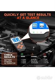 Tester per Batterie a 6 e 12 Volt】Funziona con tutte le batterie al piombo-acido da 6 V e 12 V 100-2000 CCA, comprese le batterie normali allagate, piastra piatta AGM, spirale AGM, GEL ed EFB per tosaerba, moto, auto, camion leggeri, barche, ecc. la maggior parte degli standard delle batterie, come CCA, BCI, CA, MCA, JIS, DIN, IEC, EN, SAE.