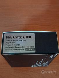 vendo Box Mmb 2.0 android permette di trasformare lo schermo della bmw in un tablet android. SCAMBIO A MANO O SPEDISCO. Dotato del chip Qualcomm 6125, questo dispositivo offre una maggiore stabilità, prestazioni più fluide e una minore generazione di calore, risolve efficacemente i problemi di ritardo e compatibilità della versione di prima generazione. Il dispositivo ha l'Android 13 personalizzato di MMB e offre un'esperienza utente piacevole ed efficiente. Con il supporto per Google Play Store e Apk Pure, puoi scaricare e utilizzare una varietà di app sul sistema multimediale della tua auto, tra cui TikTok, Hulu, Waze e altro! Questo dispositivo dispone di slot integrati per schede TF e SIM e supporta l'espansione della memoria e la connessione di rete tramite scheda SIM. È stato sviluppato appositamente per le reti eurasiatiche e risolve efficacemente il problema dell'incompatibilità della banda di frequenza delle schede SIM. Questo dispositivo è compatibile solo con modelli BMW. Per altri modelli, si prega di visitare il negozio MMB per trovare una versione universale. Il veicolo deve supportare CarPlay (di solito per i modelli dal 2018 al 2024). Questo dispositivo trasmette i dati al sistema multimediale del tuo veicolo tramite CarPlay