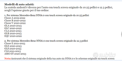 INTERFACCIA ANDROID PER MODELLI NTG 6 MERCEDES DAL 2020 IN POI