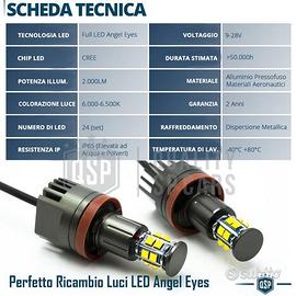 Kit Full LED ANGEL EYES H8 Professionale PER BMW SERIE 5 E60 E61 | Trasformazione Anelli Luci di Posizione BIANCHE 6000K-6500K | NO Error CANbus 120W 2000LM | Luxury Series - LUCE BIANCA | Colorazione "Ghiacciata" 6000K-6500K - PLUG & PLAY | Stessa Presa della Lampadina Alogena di Serie. Facile installazione - NO ERRORI | Sistema CANBUS Integrato - 120W 2.000 LUMEN | Più Potenza di illuminazione negli Anelli, dal 100 al 150% INFO: Kit Conversione Luci LED Angel Eyes Bianco Ghiaccio di Nuova Generazione, sono Lampadine LED Professionali che si Sostituiscono alle lampadine alogene di Serie Illuminando gli Anelli dei Fari Bmw con una Luce LED Bianca e Densa, sono CANbus ovvero NON creano Errori sul display della Vettura e non Necessitano di Adattamenti sul Veicolo per l'installazione, sono PLUG and PLAY. COMPATIBILITÀ - BMW SERIE 5 E60 E61 Dal 2007 RESTYLING ( Con Xenon Lenticolare di Serie ) - con LAMPADA ALOGENA H8 di SERIE MONTAGGIO: - SMONTAGGIO DELLA PROPRIA ALOGENA effettuando movimento rotatorio sbloccante. - CONTROLLO: Collegare solo la presa del led (PLUG AND PLAY); se non ci sono problemi, procedere al montaggio - BLOCCARE SULL'AUTO: effettuando movimento rotatorio Dettagli Tecnici - IL PACCO INCLUDE: 2 Lampade, 2 Unità Controllo Canbus, 2 Unità Controllo Tensione - COLORE: Bianco Ghiaccio - CARATTERISTICA: Canbus - ATTACCO: H8 - TECNOLOGIA: Full LED - UTILIZZO: Luci di Posizione Angel Eyes - EFFICIENZA: 120W, 2000LM, 24 LED - MATERIALE: Alluminio d' Aviazione 6063, Elementi in Abs - RESISTENZA: IP 65 (Elevata ad Acqua e Polveri) - DURATA STIMATA: 50.000h - SPECIFICHE AGGIUNTIVE: Filtri Antisfarfallio Inclusi PER INFO CONTATTARE AL 3927091031 ANCHE LINEA WhatsApp OPPURE VIA E-MAIL: rtautoitalia2018@libero.it CONSEGNA: - Effettuiamo Spedizioni 24-48H in TUTTA ITALIA - Ritiro in Sede con Possibilità di Visionare il Prodotto - Vendiamo solo Articoli Nuovi PAGAMENTI: - PayPal - Con Carta - Bonifico Bancario -
